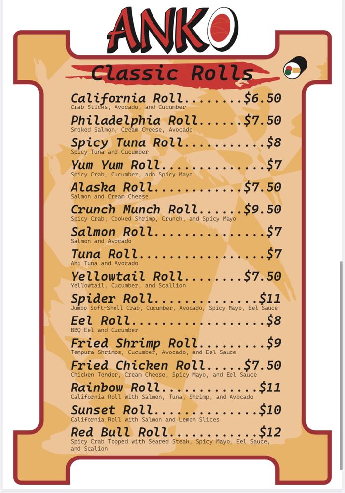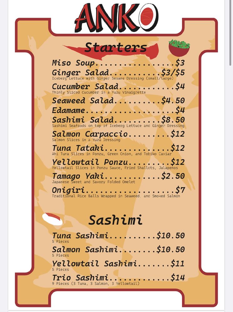 Vegetarian options are also well represented, with rolls such as the Avocado Roll and the light Asparagus Roll providing delightful alternatives for non-meat eaters. The commitment to quality is echoed in rave reviews from satisfied customers, who commend the fresh fish and exciting flavor combinations. Many diners describe Anko Sushi as a hidden gem, ideal for casual outings or special occasions, complemented by exceptional service.